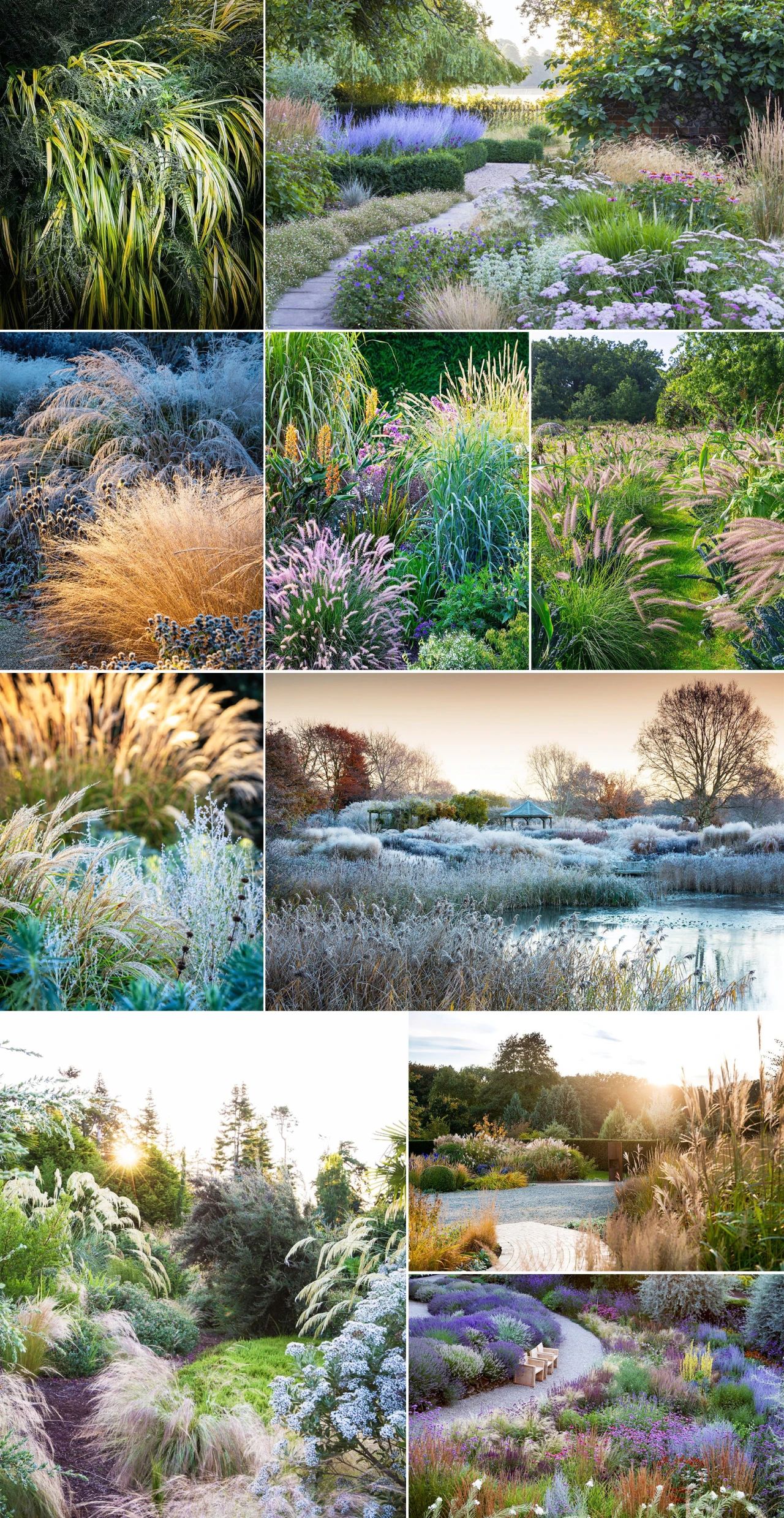 從—株到兩三株或數(shù)百株,甚至是上千株植物,大面積種植觀賞草,是創(chuàng)造獨(dú)特景觀的另一種種植方式。在大規(guī)模的園林景觀中,可以運(yùn)用多組體形較大的觀賞草來(lái)替代灌木叢或小樹(shù)林。