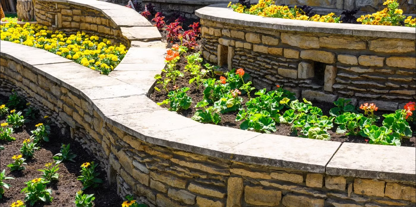 石材可以用作花壇的圍邊,提升植物區的立體感,同時隔離不同功能區,增強觀賞效果。