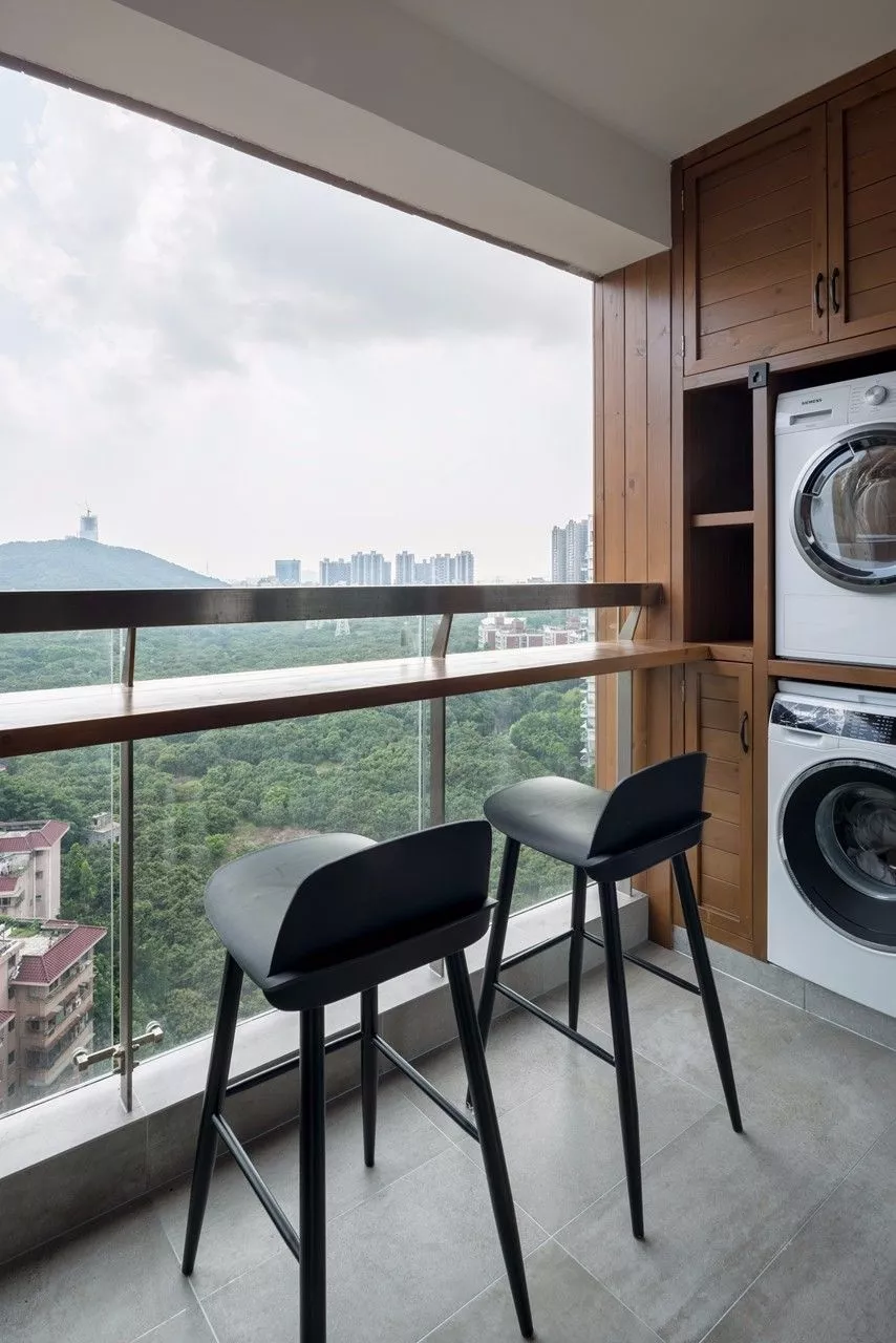 陽臺變身吧臺或餐廳,擺上兩把吧椅,絲毫不會占用太多空間。