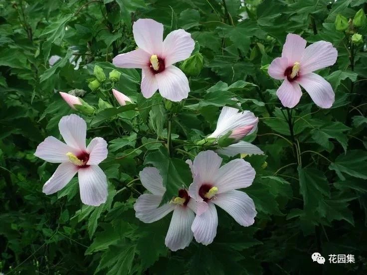 大花秋葵:多年生草本,高1~2m,粗壯,斜出。單葉互生,葉長8~22cm,葉形多變。緣具梳齒,花大,直徑28cm,玫瑰紅或白色,花期6~9月。