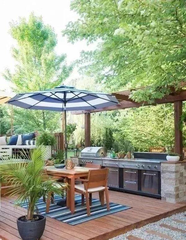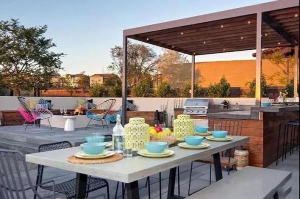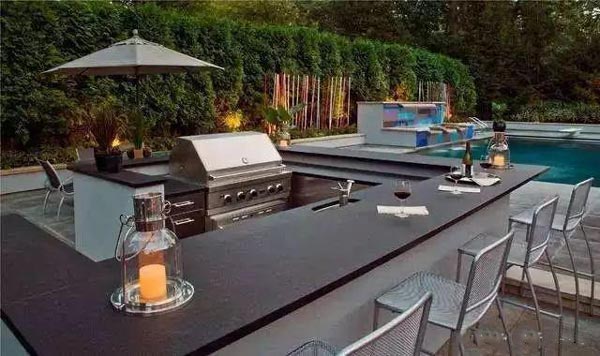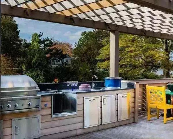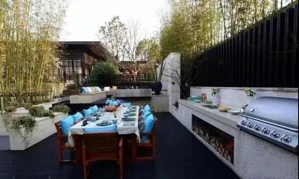 在綠草茵茵的私家庭院里和家人、朋友共享下廚會是什么樣異樣風情呢?其實,人與大自然的親近感是天性使然,只在庭院里設計一個戶外廚房,與自然空間相互交融,將自己融在室外的暖陽里,就很美哉!花園里聚餐的時候,人們可以從頭到尾隨吃隨做,同時享受新鮮的空氣。庭院周圍種滿了可愛的植物,讓你在美麗的庭院中盡享美味,盡享花香和飯香!“碧玉妝成一樹高,萬條垂下綠絲線。”將廚房搬進庭院,享受私家庭院里的“BBQ燒烤”時光,日子更美哉~