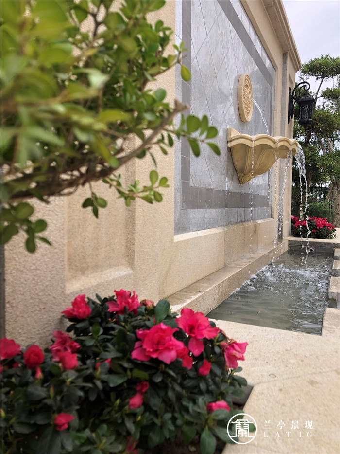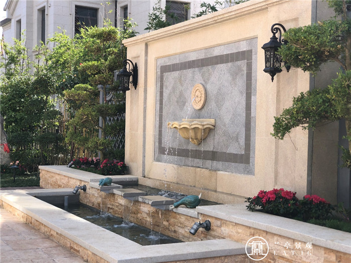 一面墻,兩棵樹,三層水,通過簡單的搭配組合形成一幅優美的畫卷。