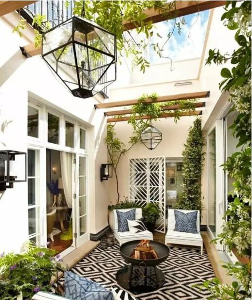一般花園洋房的下沉式庭院很多人會選擇具有一定采光能力的封頂式設計,對于這種下沉式庭院在裝修設計時,需要做好頂部的防水,以防雨季暴雨頂部滲漏。對于完全封閉的下沉式庭院,要多設置通風窗與采光窗,有效地將陽光和新鮮空氣引入地下室,而且為地下室創造了一個良好的庭院景觀。下沉式庭院加設一個玻璃屋頂,讓空間可以不受天氣影響,變得更加實用,我們可以根據喜好來設計中意的功能空間。