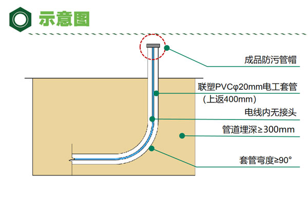 (3)電線.電纜穿入導管后埋置深度(種植區)不應小于300mm.