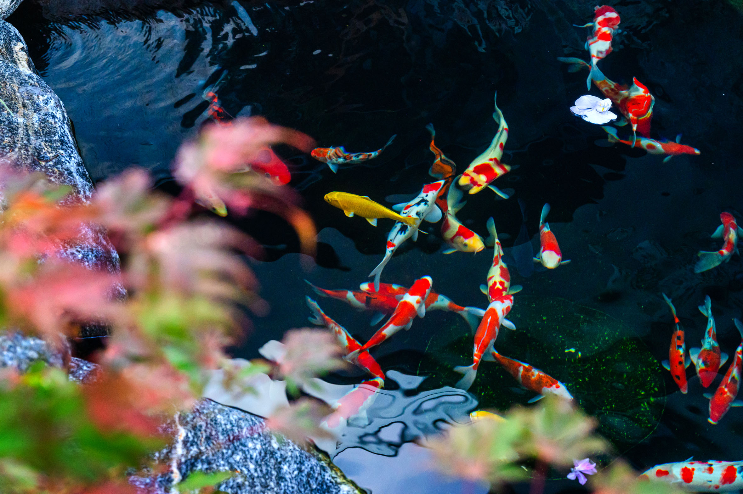 庭前山水相依、流水潺潺,清泉從假山流出,雖是人造的流水,亦如深山的瀑布。溪徑蜿蜒流向茶亭,沿河岸邊設置高低景石和石板橋,搭配楓樹、杜鵑球、玉簪、金葉石菖蒲等植物組景,為業主提供親水活動空間,可坐與岸邊石上觀賞池中錦鯉嬉戲,楓葉低垂,花木倒影,山水意境,讓人流連忘返。