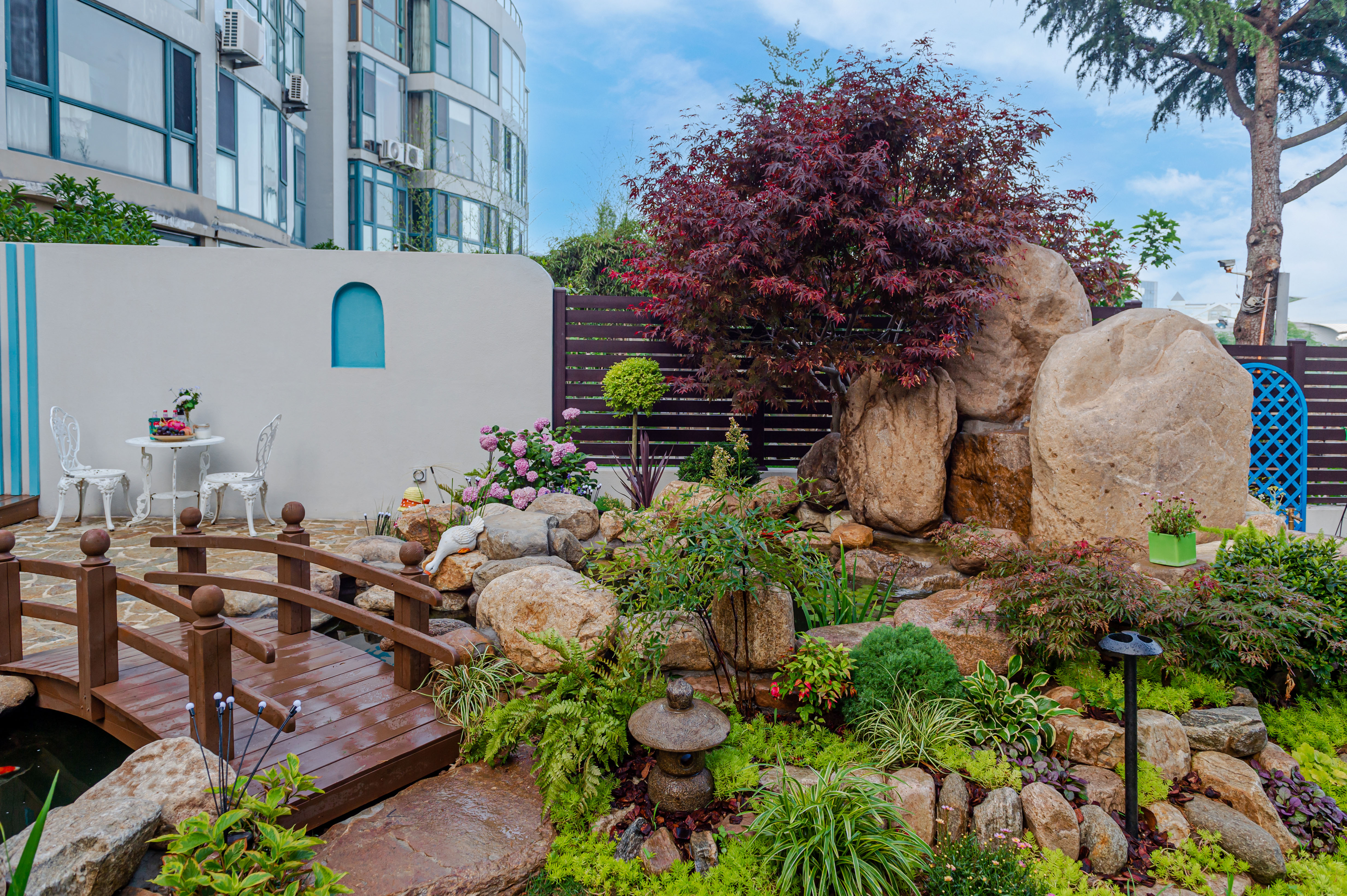 清晨,睜開雙眼,推開窗戶,呼吸著院子的花香,青草味,聽著鳥叫聲,看家中的貓咪與狗狗在草地中快樂地穿梭著。傍晚躺在秋千上看日落和晚霞,感受著院子里溫柔的風。夜晚,花園化身成為神秘的世界,在院子里看繁星點點,沐浴在柔和的燈光中放松身心,在這寧靜的夜里,只聽到潺潺的溪水聲,讓人卸下了一整天的疲憊。