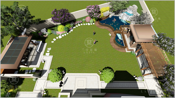 業主需求:需要錦鯉池,會客區,綠化種植。