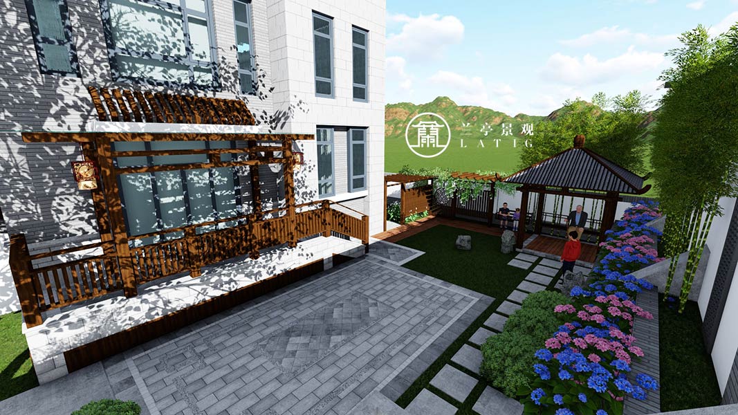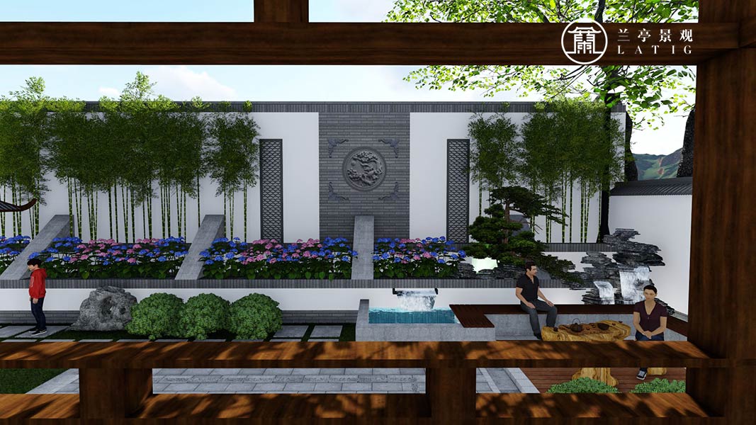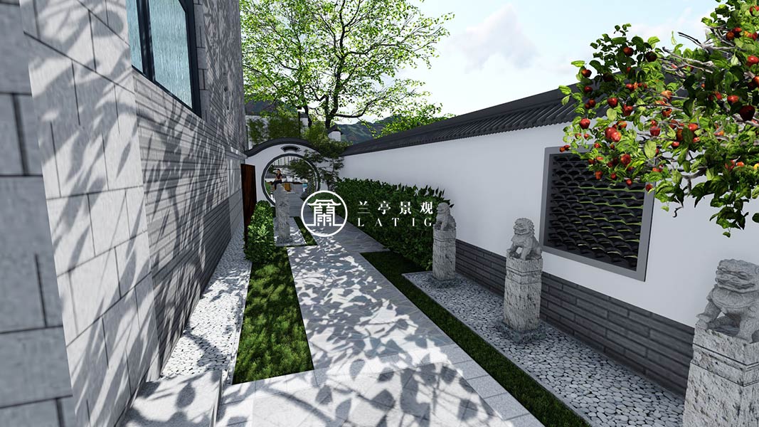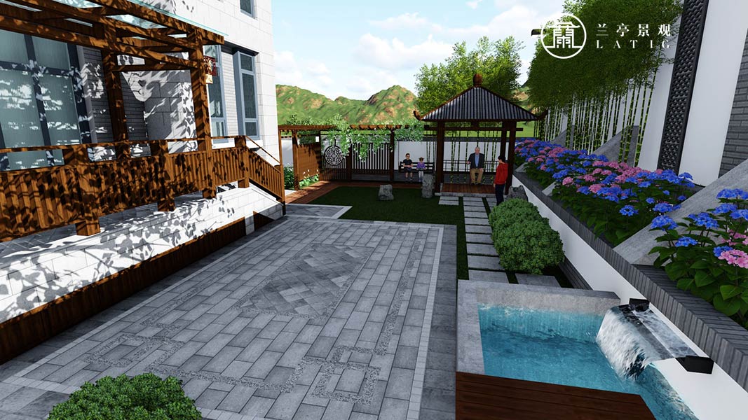 屬性:庭院效果圖 庭院面積:500-1000㎡ 庭院設計風格:新中式