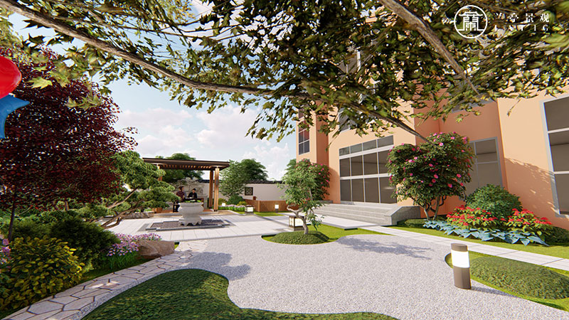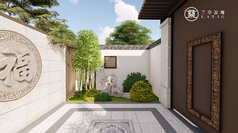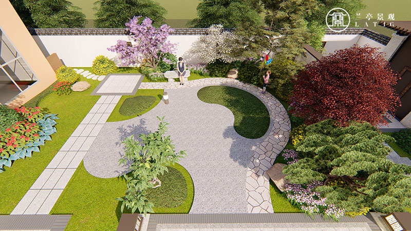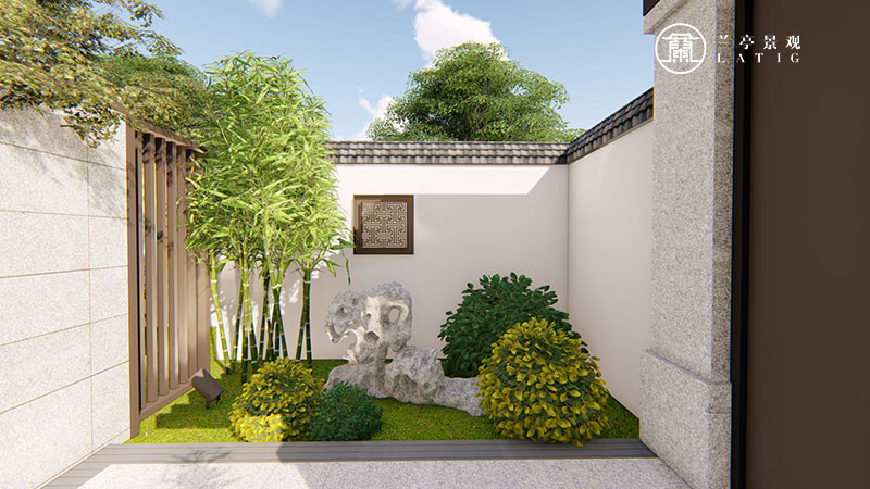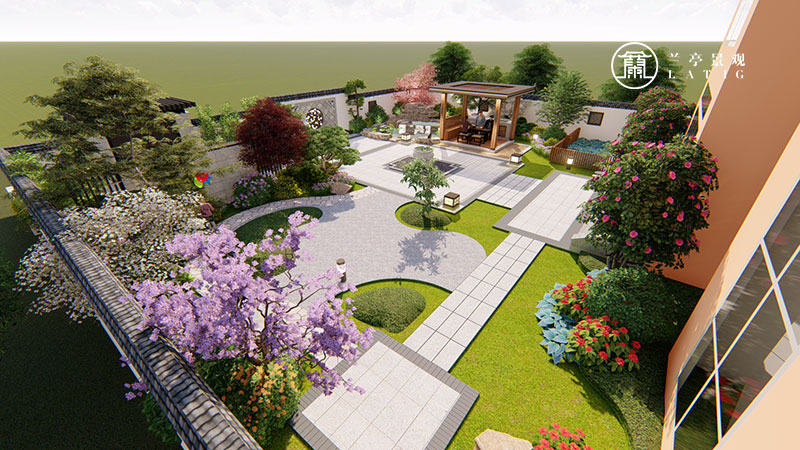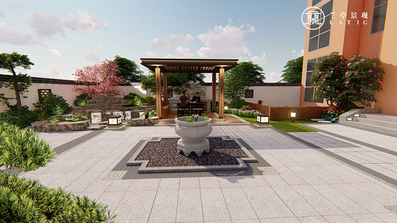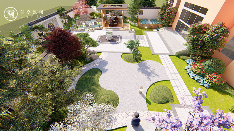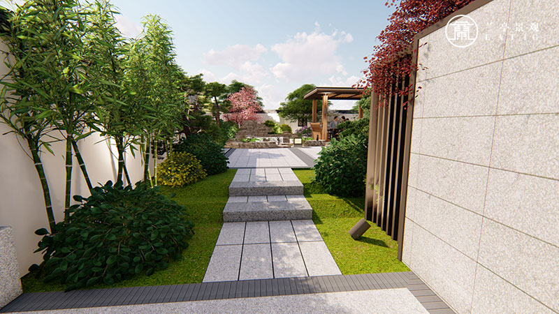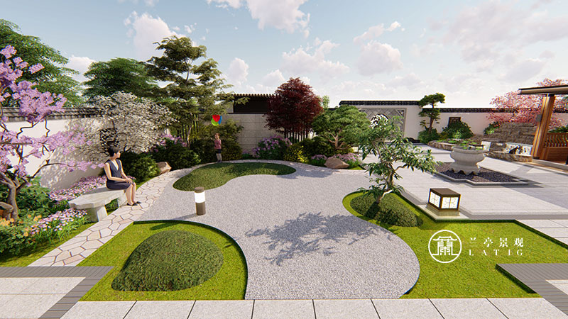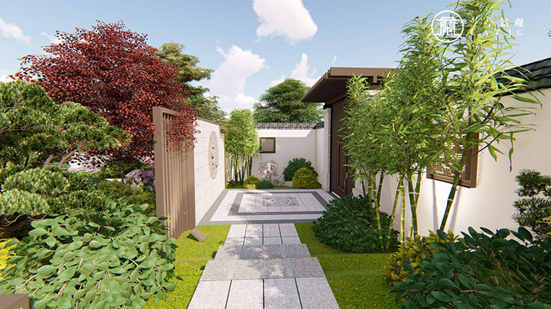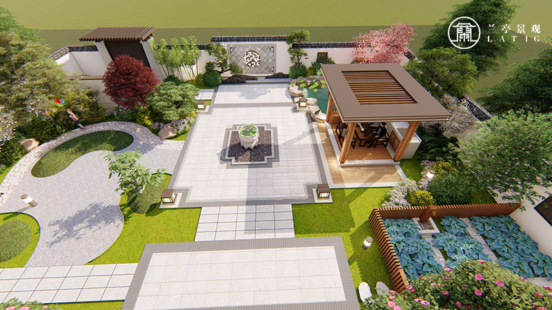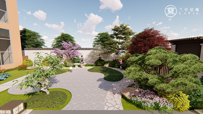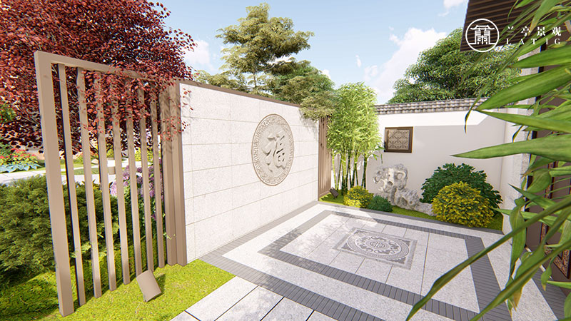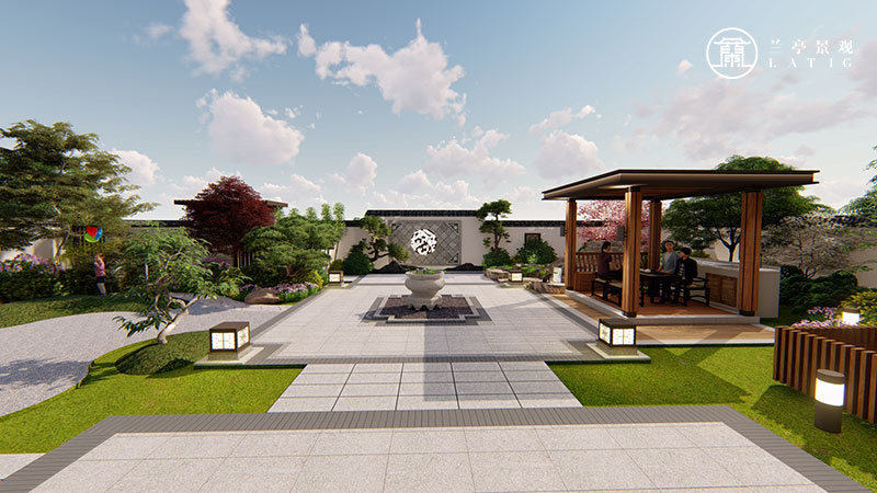 屬性:庭院效果圖 庭院面積:500-1000㎡ 庭院設計風格:新中式