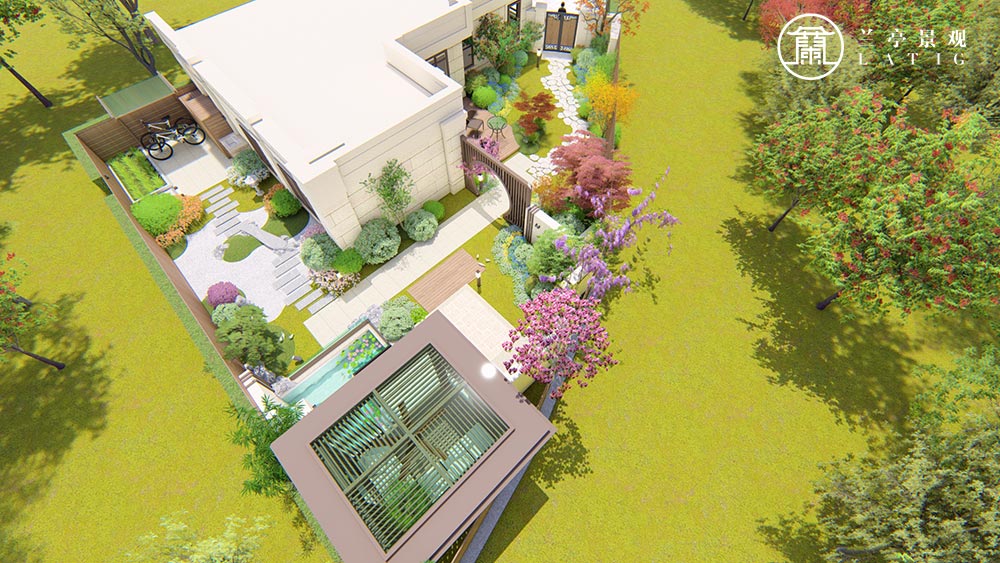 屬性:庭院效果圖 庭院面積:200-500㎡ 庭院設計風格:現代簡約
