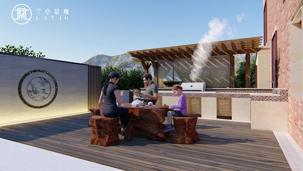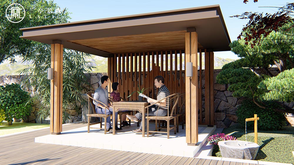 本案意在將“現(xiàn)代中式園林、禪意自然山水”相互穿插串聯(lián),通過新中式語言營造出“靜謐的安詳環(huán)境”。本園東側院根據(jù)其空間特性定義為活動健身區(qū),西北角為茶飲觀賞區(qū),北側花園將園林邊界取直后,空間感受繼而開闊大氣,結合傳統(tǒng)“背山面水”的風水理念設置遠山小品。西側院人群主要針對老人使用,針對材料,樣式、以及具體尺寸進行優(yōu)化設計,使得本案體現(xiàn)出人文關懷。東南院的山水空間營造出入戶花園、山水田園的空間質感,使得歸家的節(jié)奏更加溫馨。特選造型意在呼應“清風明月本無價 近水遙山皆有情”之意。