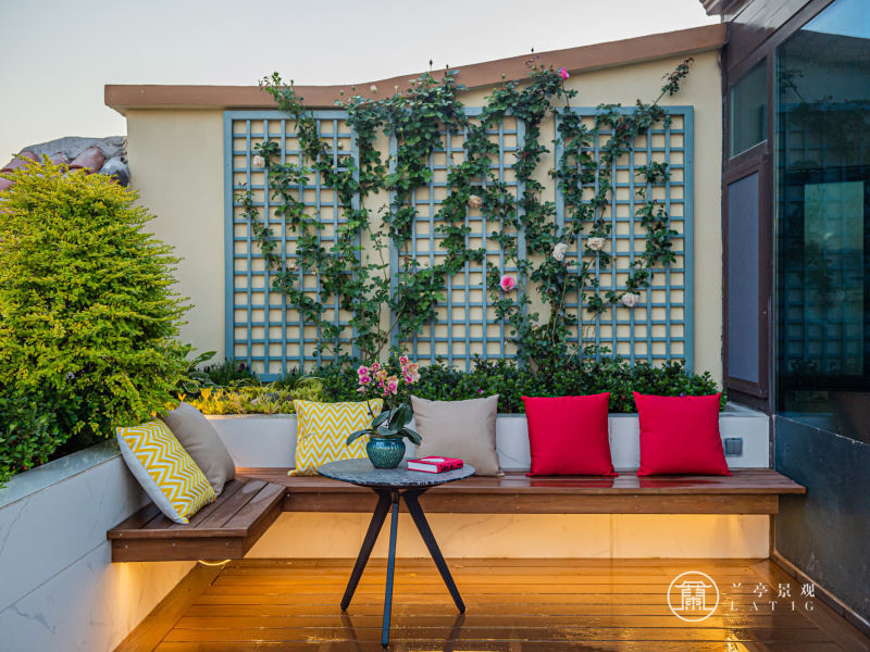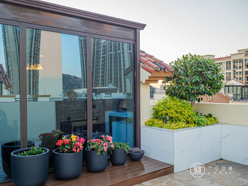 青島屋頂花園設計施工-水岸新都屋頂花園設計實景圖、露臺花園設計實景圖 屬性:庭院實景案例 庭院面積:200㎡以下 庭院設計風格:現代簡約 設計師: 周莉莉 瀏覽量:8820 發布時間:2021/11/5 18:11:54