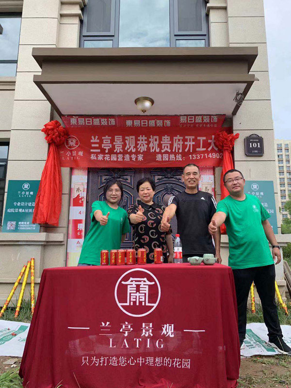 開工儀式上,到場同仁一一進行虔誠祈福,表達對業(yè)主新居未來愿景的美好祝福。同時蘭亭景觀庭院設(shè)計的工作人員與業(yè)主進一步對設(shè)計和施工細節(jié)進行現(xiàn)場溝通和確認,最后,各位項目人員和業(yè)主共同合影留念,記載下這一重要性時刻。在一片歡聲笑語中,開工儀式圓滿禮成!