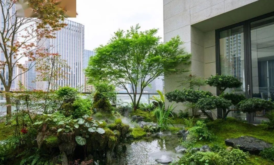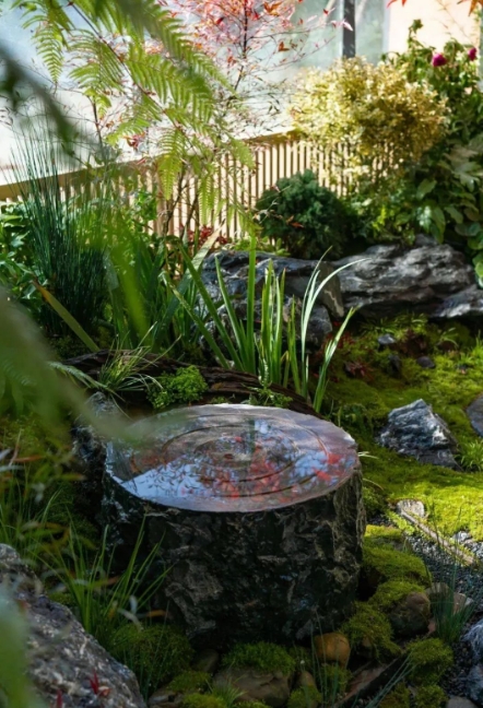 在庭院水景中,設計創造出一種幽谷的意趣;將禪意嵌入山水,融入自然;花木水石,納天地靈氣,宛自天意;一呼一吸,一吐一納,感受自然的韻律。