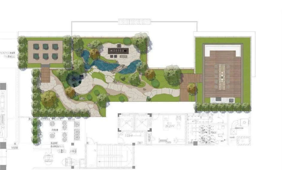 涵麓渡W會所花園大約600㎡,主要從空中花園、歸園田居、聚會空間、云階月地四大主題空間出發,花園風格是禪意盎然的現代日式庭院。青島庭院設計公司——蘭亭景觀為您介紹。