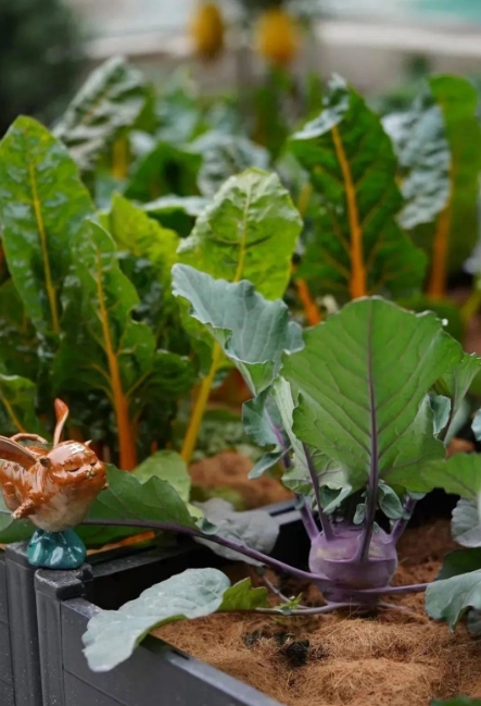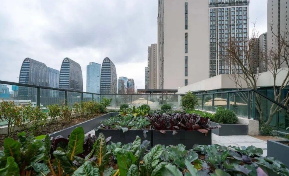 在屋頂花園的一角還設置了一片菜地,在規劃好的小花盆中種植香草,大花箱中種蔬菜,又或者在網格架上種植藤本蔬果,在裝飾庭院的同時也讓人體驗了一把田園農耕生活。