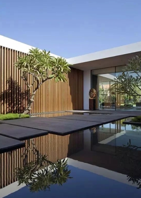 水,在中國(guó)人的庭院世界里一直是一種不可或缺的存在,那么當(dāng)水遇到極簡(jiǎn)風(fēng)花園,究竟會(huì)擦出怎樣的火花?動(dòng)態(tài)水可以活躍空氣氛圍,給人生機(jī)感,但極簡(jiǎn)風(fēng)格庭院的動(dòng)水不適宜過(guò)大。