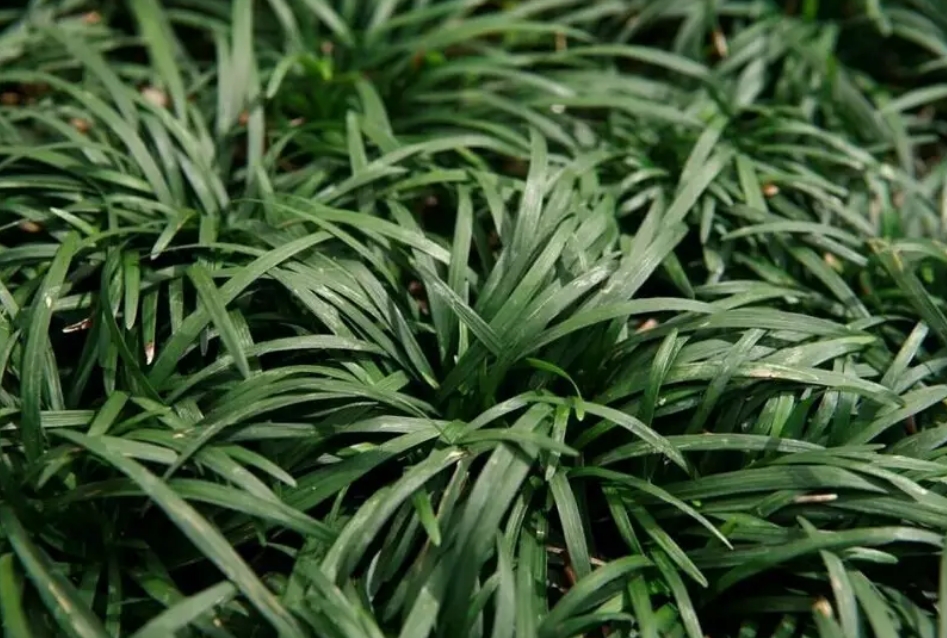 沿階草是耐陰濕觀葉地被植物,宜作小徑、臺階等的鑲邊材料。