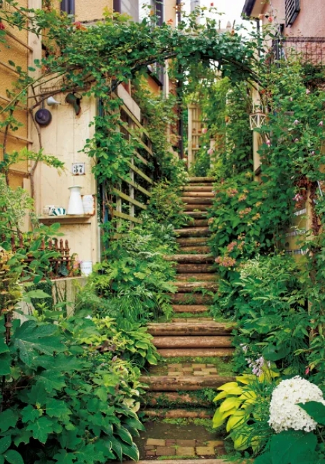 有時在打造花園時,可以刻意制造一些不完美。例如,用質(zhì)樸的枕木搭配碎石打造一條不規(guī)整的花園小路,兩邊的花草探出花壇,遮蓋小路的兩邊,整體氛圍十分自然隨意,漫步其間更是覺得放松愉悅。