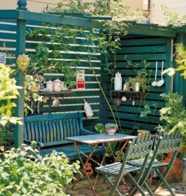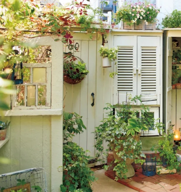 也可以在墻面上打造一些置物架,既可以當作儲物空間,用于收納暫時不用的園藝工具、花盆等,也可以擺上雜貨,成為一個展現(xiàn)主人審美的空間。