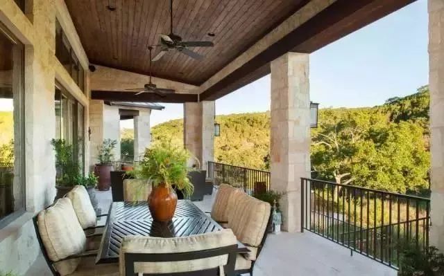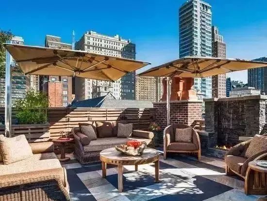 開放式露臺如果要擺放家具,建議放石器金屬、防腐木等家具,不怕風吹日曬可以長期放在室外。
