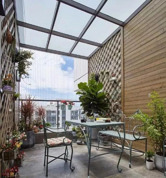 只要用心就能裝出一個這么漂亮的露臺,類似種些花花草草之類的讓人看上一眼,渾身都覺得舒服,很是享受,露臺可以做成開放式的、半開放式的和封閉式的,可根據個人喜歡和需要,將露臺合理利用。
