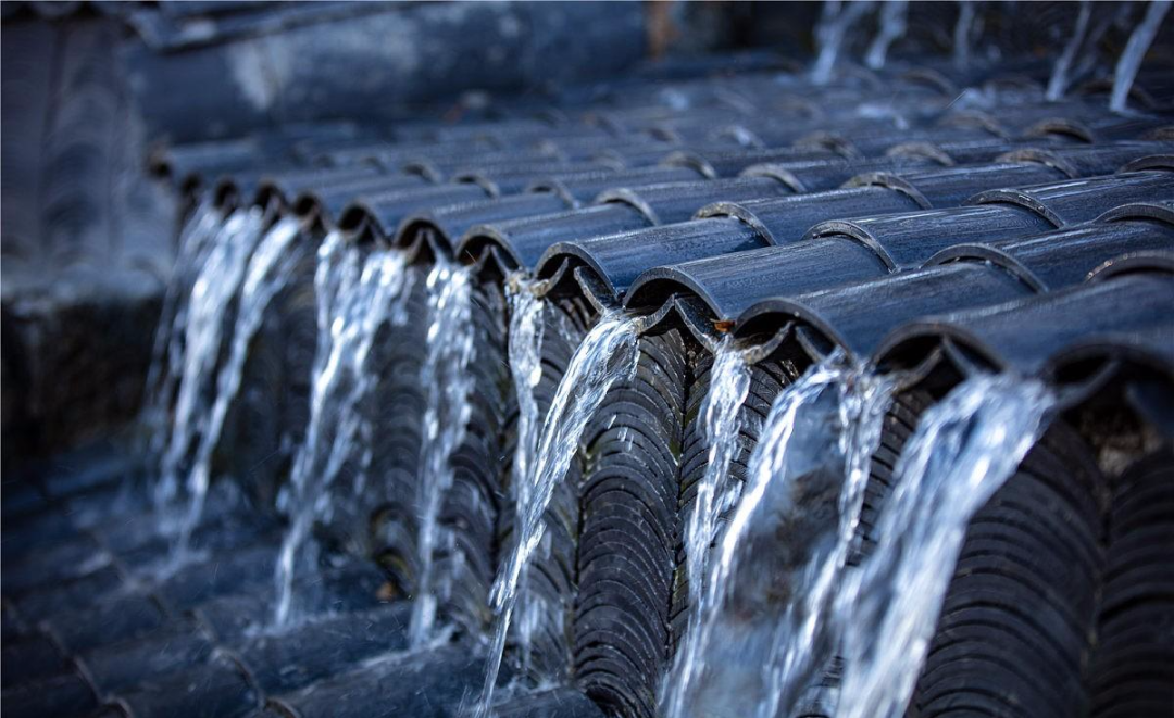 小型中式庭院中,利用灰瓦做一處跌水景觀也十分應景,且頗有韻味。