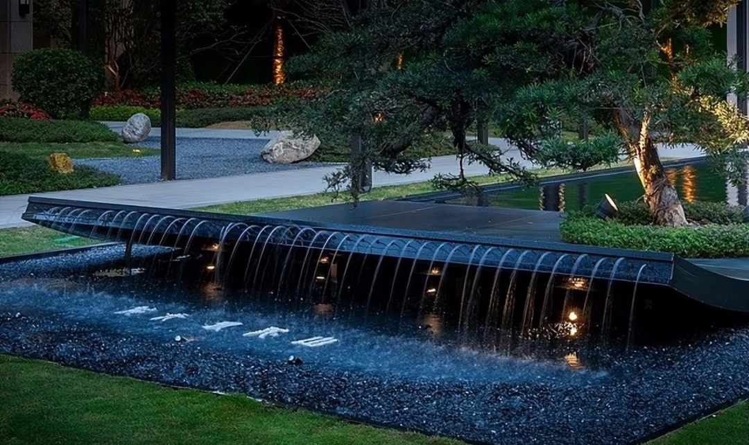 這種水景的原理與水缽是一致的,都是下方設置水箱及排水系統,做到循環過濾。青島別墅庭院設計公司——蘭亭景觀為您介紹