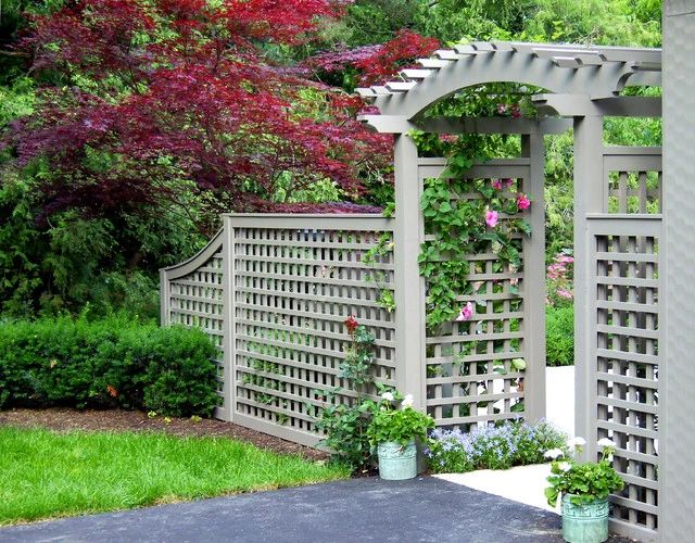 縱向無縫式木圍欄是另一種設計,密布木板,但垂直放置。樣式設計時,可以在木圍欄的頂部增加裝飾網格柵或木檁條,不僅能增加圍欄的高度,同時也添加了花園景觀變化的多樣性。