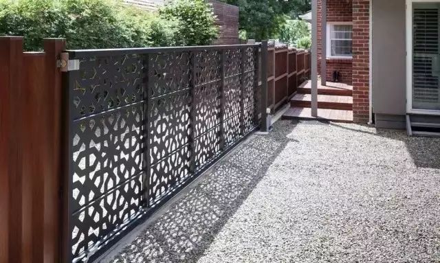 這種類似于編織籃紋理的木圍欄,當陽光照射到編織木板上,原本留出的縫隙會產生有趣的光影效果。
