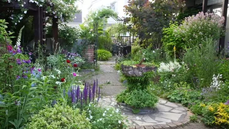 越是狹窄的地方,越是需要大型的硬件讓氣氛得到改善。如放置一個玫瑰拱門,遮擋住丑陋的電線桿或是家晾曬的衣物架,而把數只拱門連接起來,就可以提升整體環境的深邃感……利用花園硬件來創造出視覺魔法,進一步提升小路的品質。