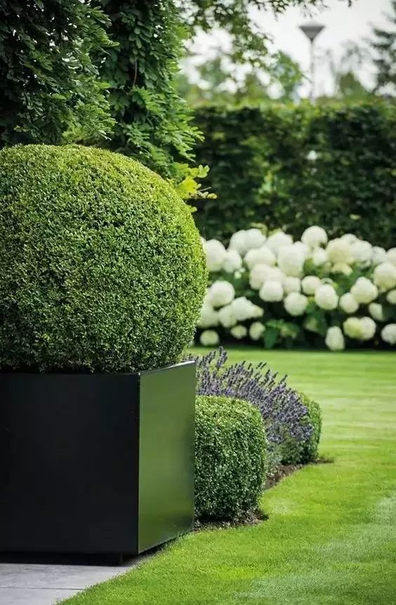 植物對于其他園建而言屬于軟景部分,用于軟化結構性線條。而植物自身同樣需要結構性的植物來統領整體,與自然形態下植物無序的生長形成區分。在大部分改造的花園中,都是應為缺乏骨架性的植物,造成花園種植的散亂與冗雜。在花園中,可作為結構性植物包括,各種修剪的樹籬、造型球,枝干整齊的喬木、灌木等等。他們形態穩定,即使在冬天也能作為花園的骨架存在。