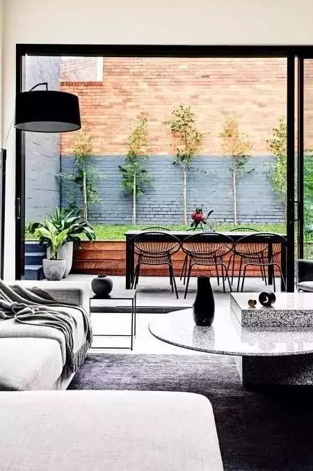 這種風格注重實用功能,以“少就是多”為指導思想,強調室外空間形態和構件的單一性、抽象性,追求材料、技術、空間的表現深度與精確。多采用藝術玻璃、簡潔抽象的鐵藝,布藝選擇多以抽象的點、線、面為主。以求得更多共性,突顯現代簡潔主題。