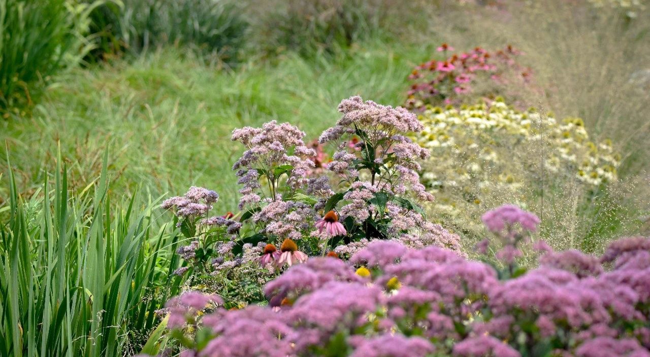 在雨水花園中,植物配置就顯得尤為重要,它們決定了花園的視覺效果,也在小范圍的生態平衡中扮演著關鍵角色。合適的植物能夠增強雨水花園的生態功能,幫助處理徑流、改善水質,并支持當地生物多樣性。