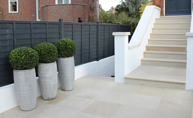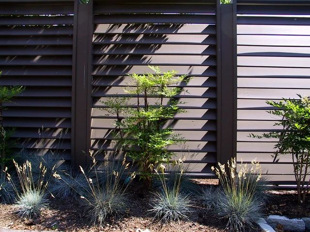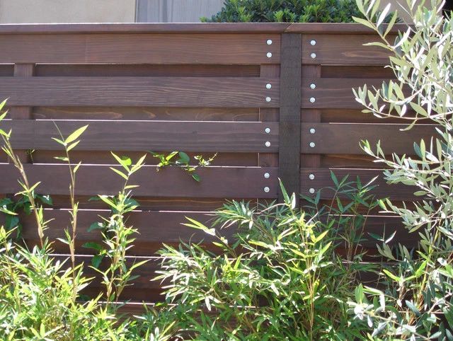 如果想為花園增添現代氣息,這種水平的寬板木圍欄是不錯的選擇。不僅能在視覺上擴大花園空間,木板之間的留縫又能使花園內外空氣相互流通。在圍欄前的種植池內搭配高挑、細長的植物,能柔化木圍欄帶來了生硬感。
