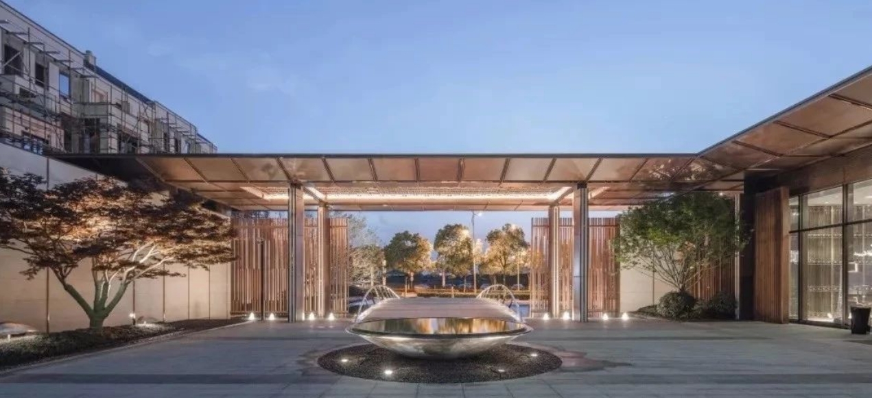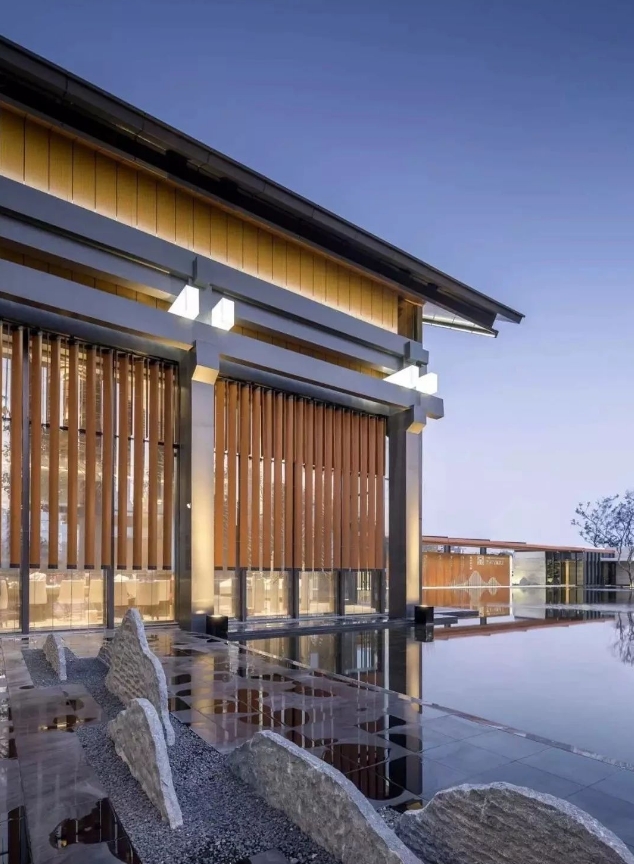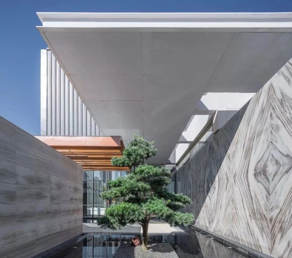 建筑語境下,景觀呈現一種簡約的美感,不爭不搶,不浮不躁,讓禪心盡入空無寂,心靜側自有畫意來。