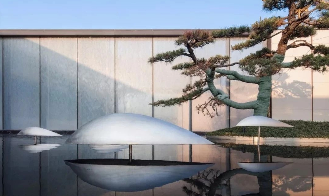 在中國文化里,魚,與人類、生活有著千絲萬縷的關系。「公元2040」提取東方傳統元素的基礎上,融合現代技術與現代審美,創造性地再設計,將現代元素和中國元素結合,將“魚”這一元素貫穿在整個設計中。隨著空間的變化,魚的形態也隨之發生變化。這種可變性,會激發人的創造性的想象。青島庭院設計