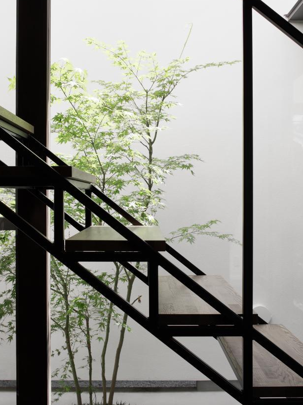 下沉式庭院利用坡差營造出一種曲徑通幽的意境美,相較于平層的設計,多了各種造型和植被的分割,讓空間在視覺上變得更有層次感,空間的布局也橫生了不少樂趣