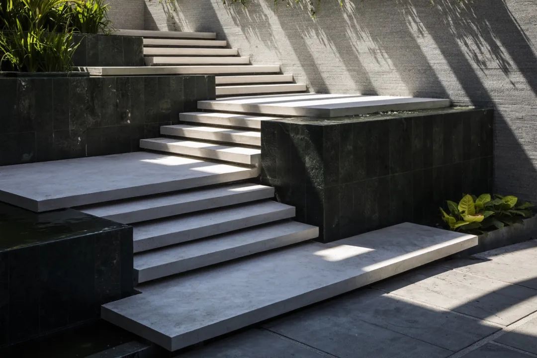1)排水能力:在設計下沉式庭院前,庭院的排水能力是重點事項,施工前,我們應該先將樓上的排水管道放置于庭院之外,以便讓雨水順利排在庭院之外。同時,在鋪裝上盡量選擇防潮屬性的,避免陰雨天墻面或者地板過度潮濕