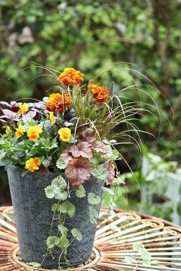 填充物應該是與焦點植物相得益彰的較矮的植物,而蔓生植物應該垂在容器的邊緣以增加視覺趣味。