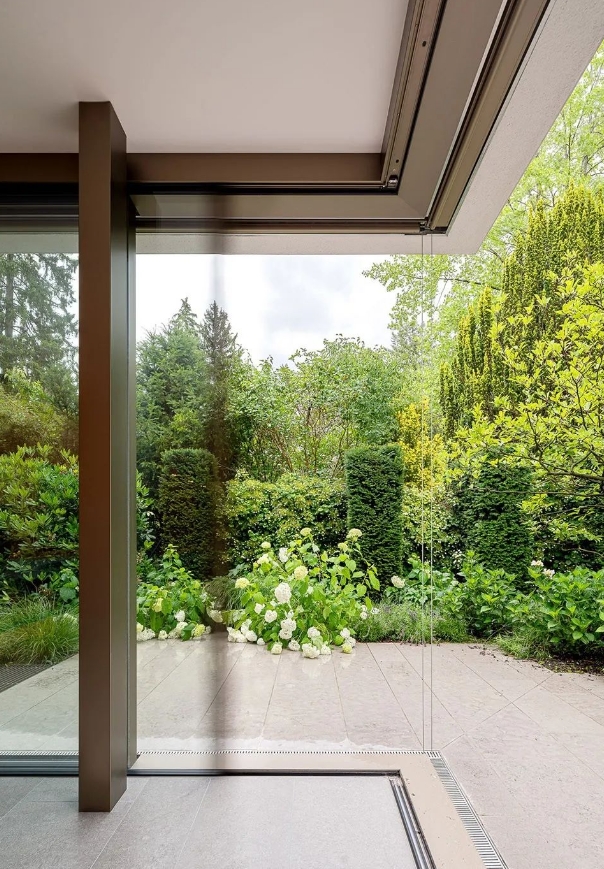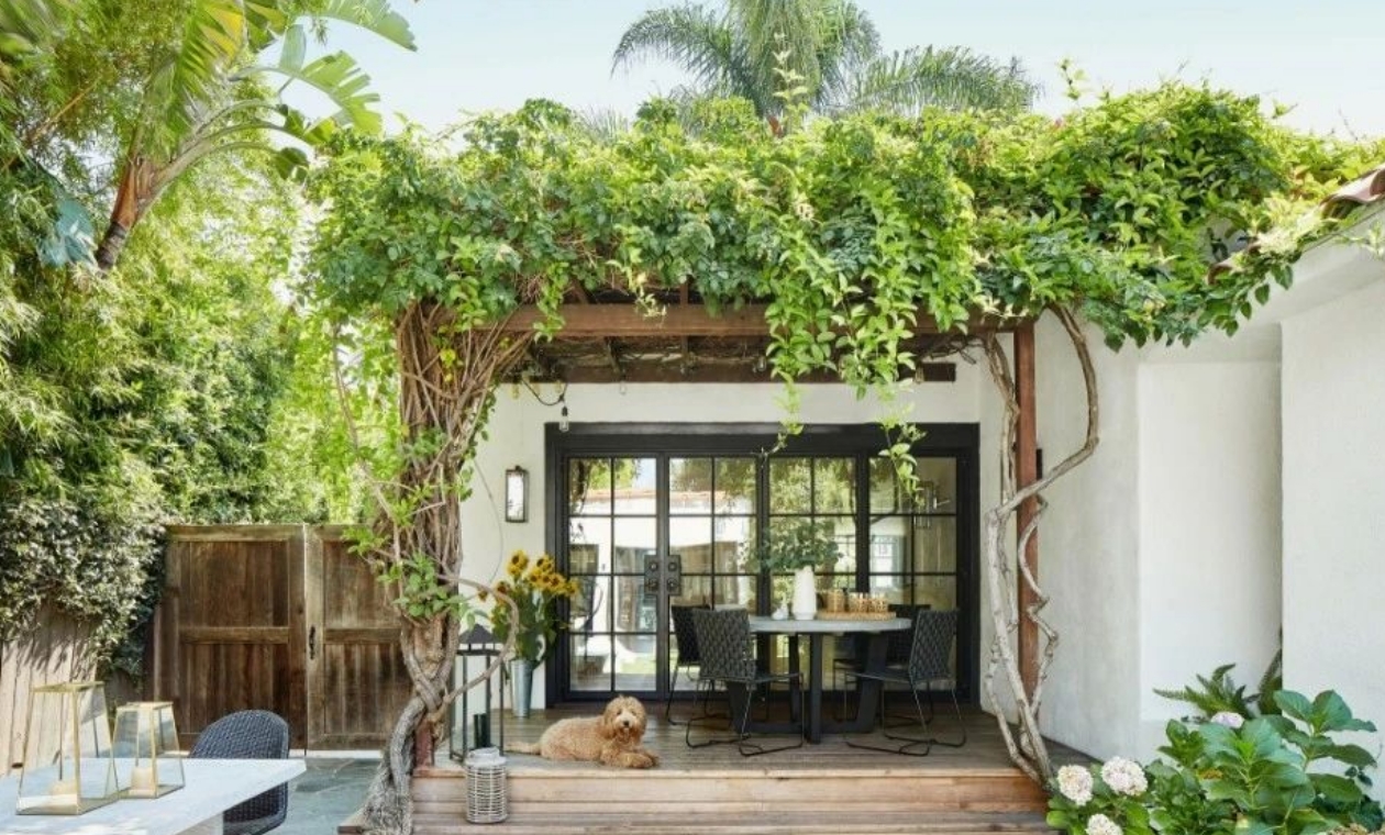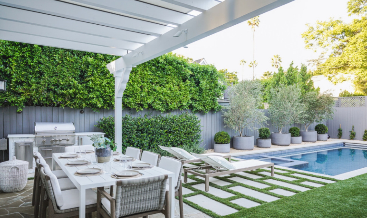 使用淺色的石材材料,例如鵝卵石,石板或白色石英石來(lái)強(qiáng)調(diào)花園區(qū)域。將背景墻壁刷成白色,或摻有白色菱形格子或其他樣式,同時(shí)也可以為葡萄藤、各種花藤提供支撐。