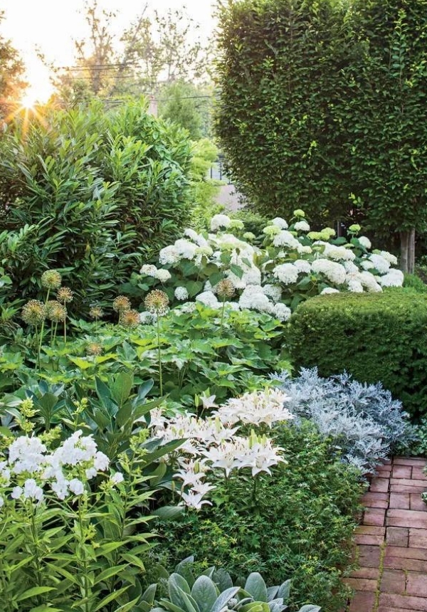 白色系:純凈、浪漫,適合打造清新自然的北歐風花園??梢赃x擇白色玫瑰、繡球花、百合等花卉,搭配白色鵝卵石、木質地板等元素。