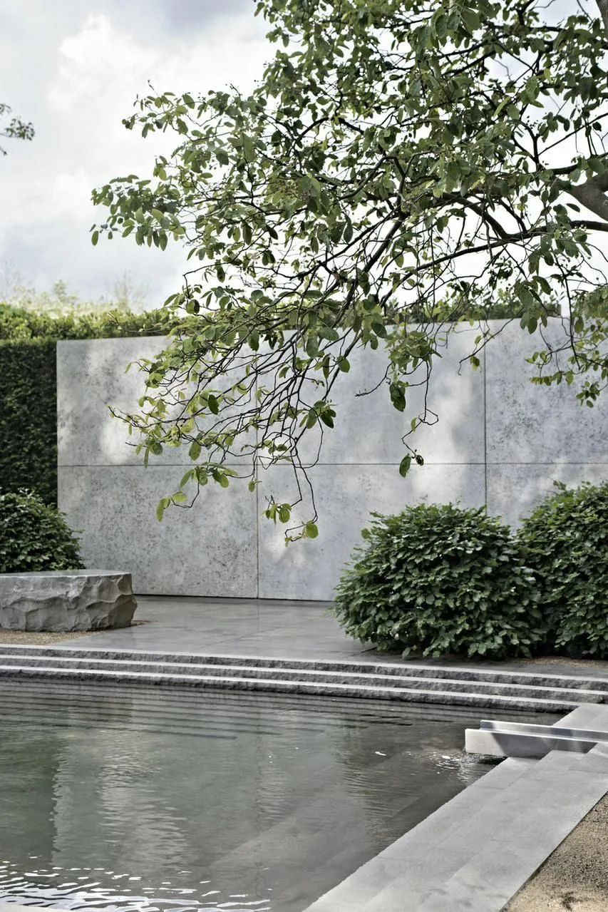 木材的顏色是最接近自然的顏色,暖色的調子,運用在庭院內,能很好地中和庭院的冷暖平衡,是設計師在設計時最常用的一種材質。