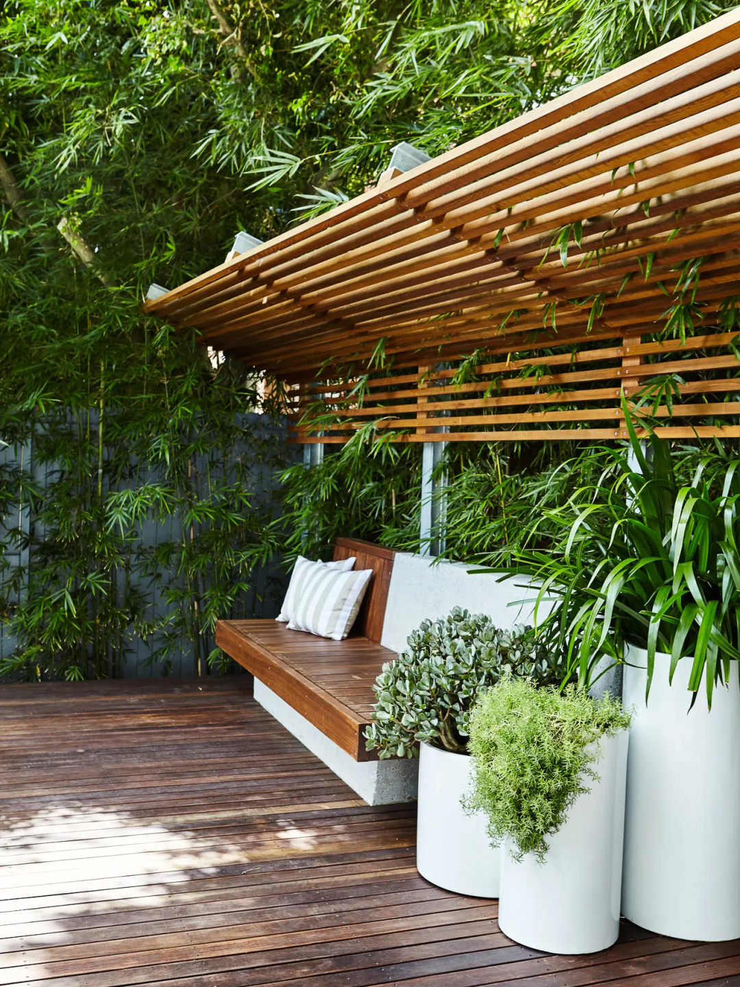 玻璃的高透視覺能和現代風格的花園融洽一體,輕松地營造了現代氛圍;這種材質相較于其他材質也更容易清洗,且能受得起長時間的風吹日曬,維護成本較低。