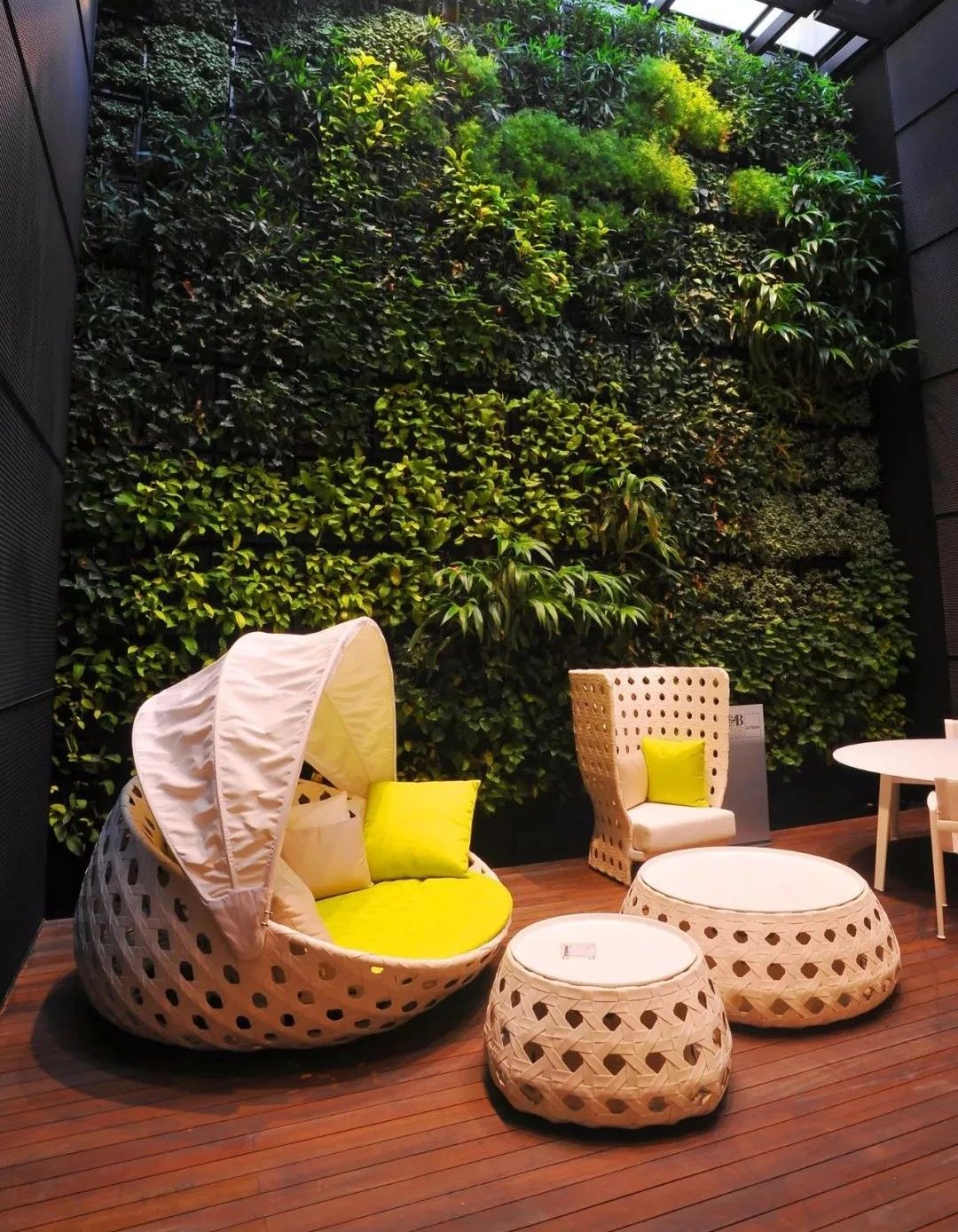 地下室也可以部分與一層打通,形成開闊的挑空區(qū)域。從室內(nèi)向外看去,生氣盎然的綠植爬滿墻面,頗有一番氣勢。