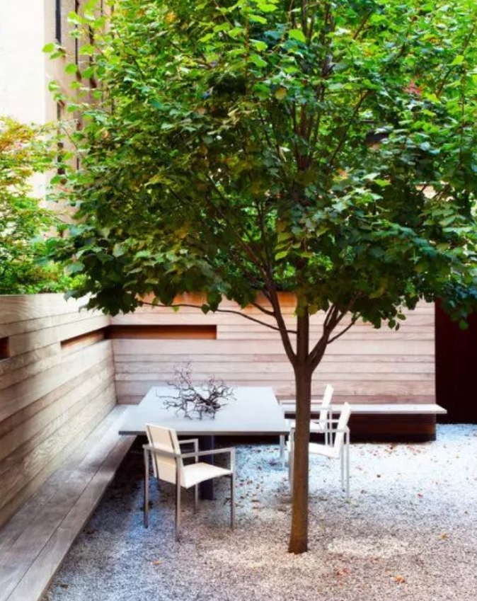 花園面積小時,不需要一個10人座的大桌子。但內嵌式、可伸展的桌椅則沒問題  。相同地,對于以后可能長到三十多米高的大樹,小花園是裝不下的,一些本土小型的植物和花草,能確保花園有一個開闊的視野。