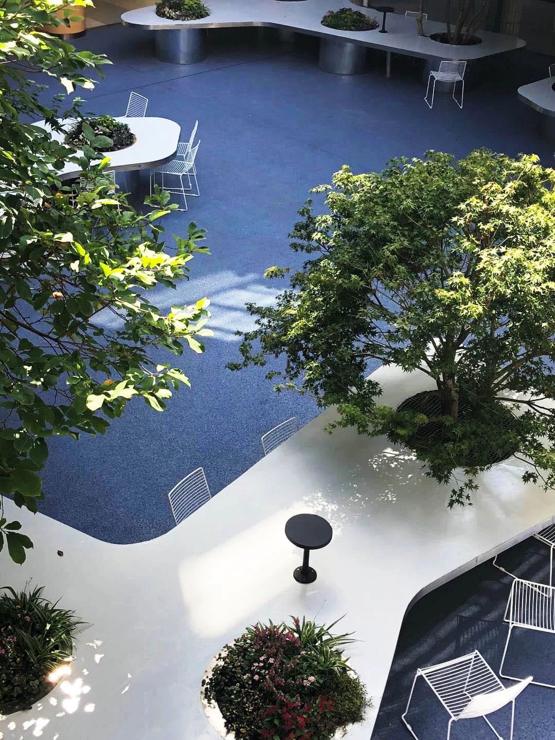 樹桌花園帶來了SES第一處室外的非正式學習空間。與室內或半室內空間比起來,這里擁有更開放的環境氛圍,有更便捷的步行體驗和更綠色的自然景觀。樹桌花園鼓勵老師和學生們的自由使用,拓展出原有庭院所不具備的功能。青島別墅庭院設計