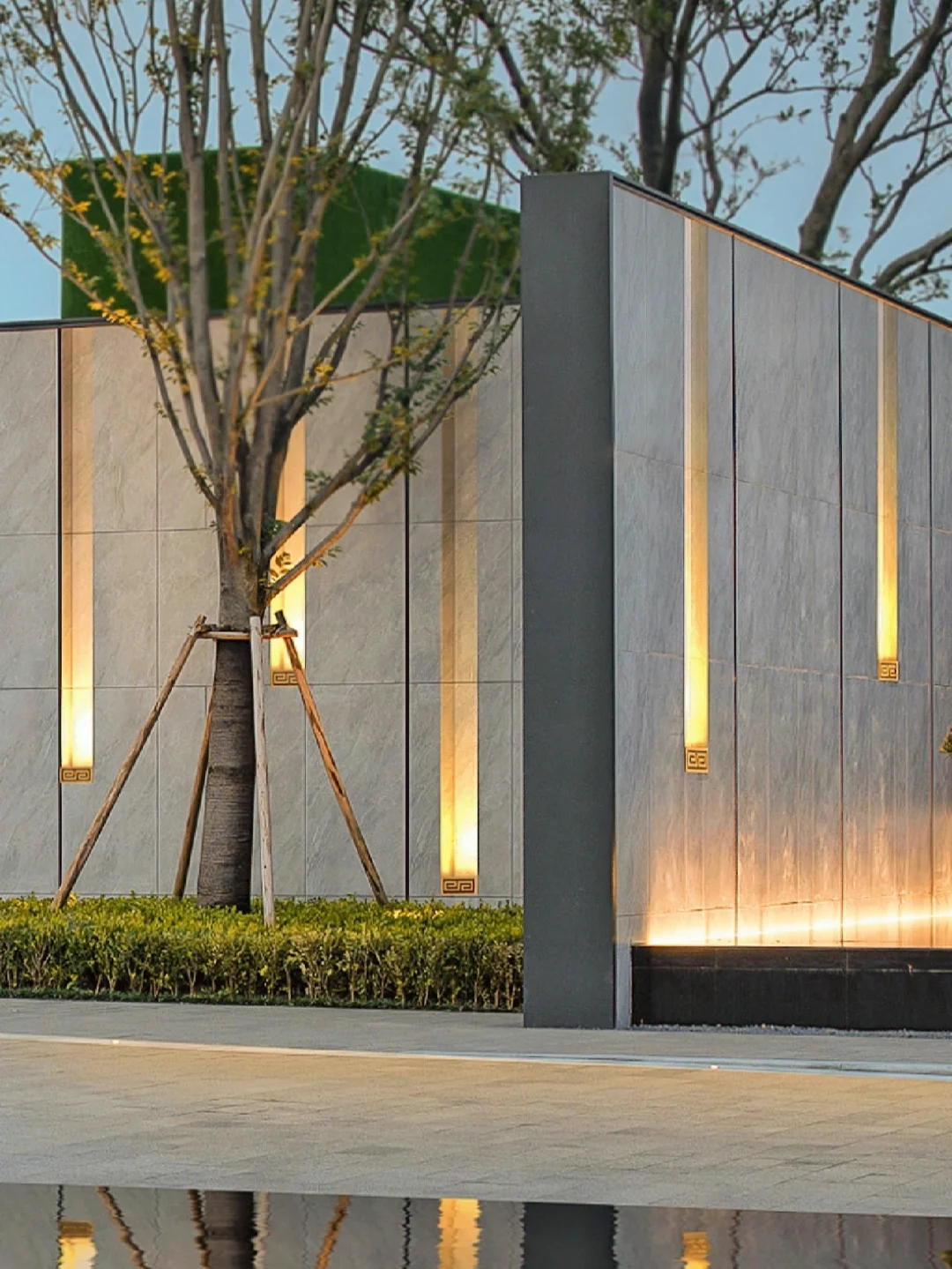 壁燈在室外區域提供一般照明或裝飾,它們有助于在整個空間內均勻分布光線,消除暗角并提供整體亮度。通常與其他光源結合使用,以營造光線充足的環境;突出顯示功能、藝術品或建筑元素,為空間增添點綴感。