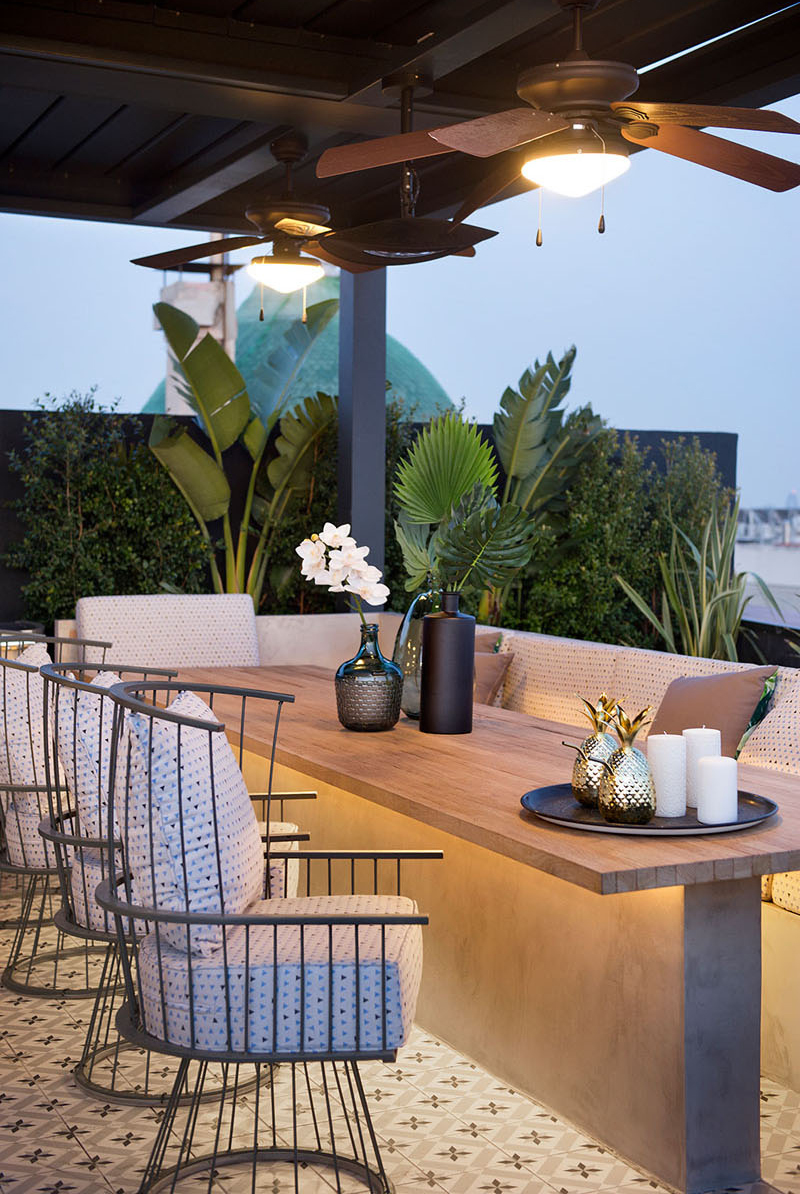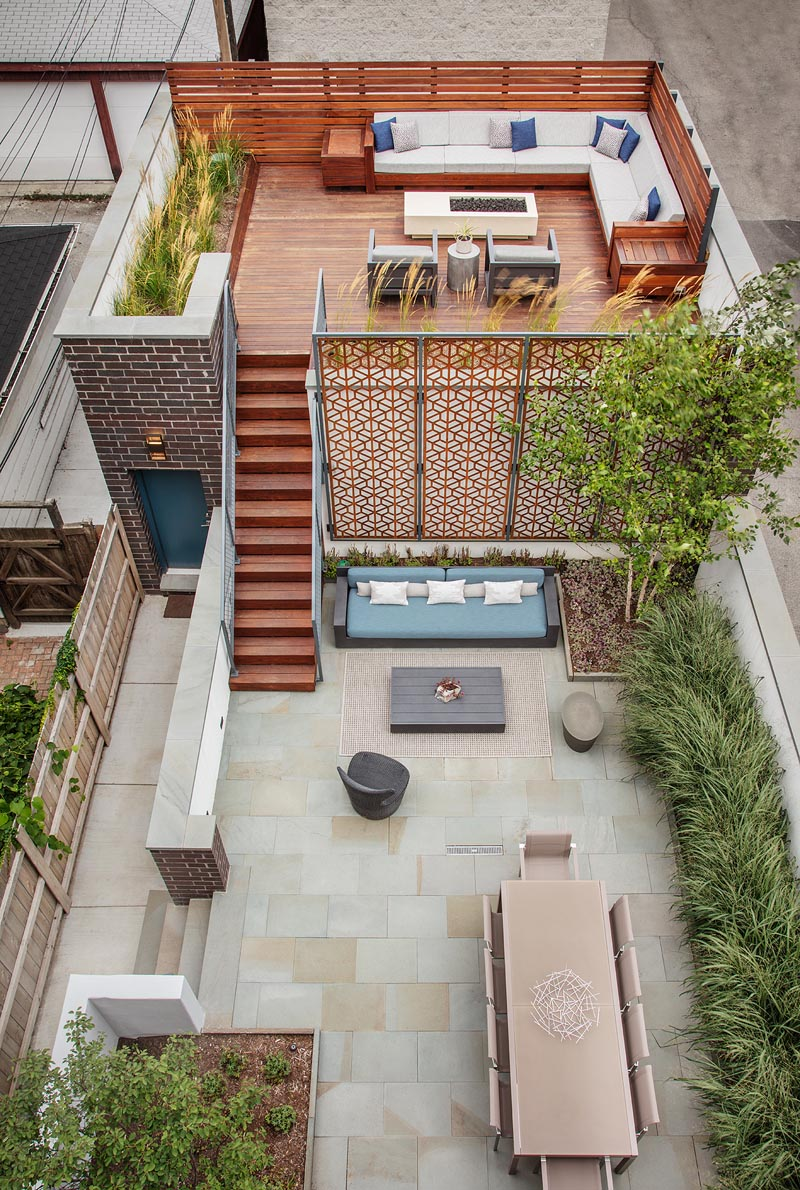 這是一個(gè)兩層的屋頂天臺花園,