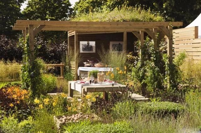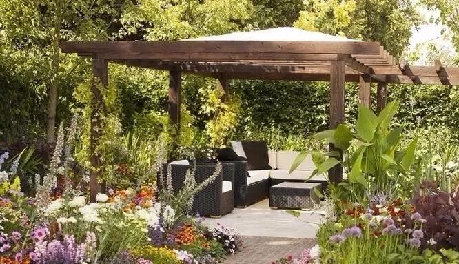 圍繞涼亭或廊架布置花境,